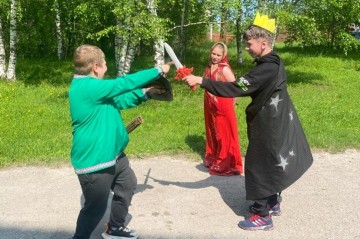 Здесь и сейчас готовят костюмы из подручных средств, придумывают простые реплики, репетируют, после чего начинаются представление инсценировок. |