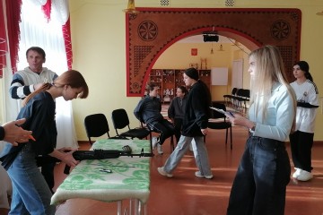 Юноши и девушки продемонстрировали умения в разборке/сборке автомата Калашникова, стрельбе из пневматической винтовки и снаряжении «магазина».