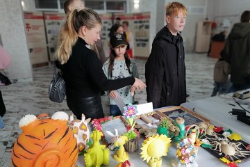 В фойе была организована выставка работ объединений ЦДТ «Юный радиолюбитель», «Столяр-конструктор», «Флора-декор», «Чудолепка», которая собрала заинтересовавшихся изделиями малышей их родителей и ребят постарше. О