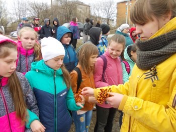 Вручение Георгиевской ленточки, как символа славы и доблести нашего народа