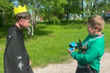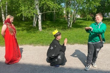 Здесь и сейчас готовят костюмы из подручных средств, придумывают простые реплики, репетируют, после чего начинаются представление инсценировок. |